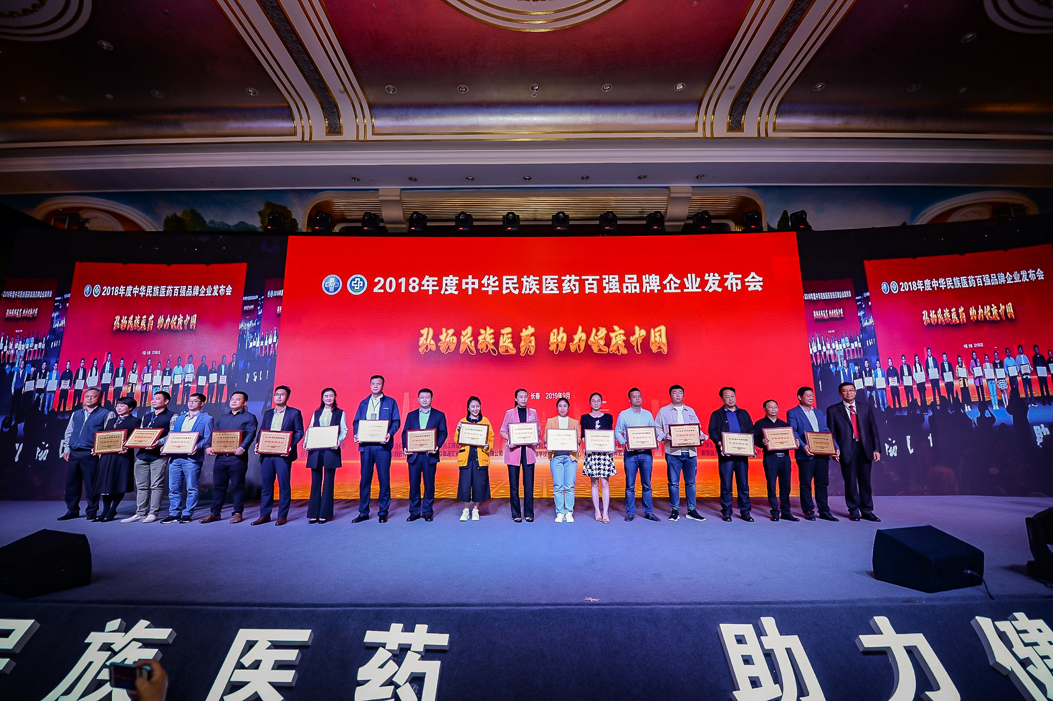 9月16日晚,2018年度中华民族医药百强品牌企业发布会在长春市举行,集团董事长公晓颖作为全国工商联医药业商会副会长为荣登医药百强榜单的企业颁奖。