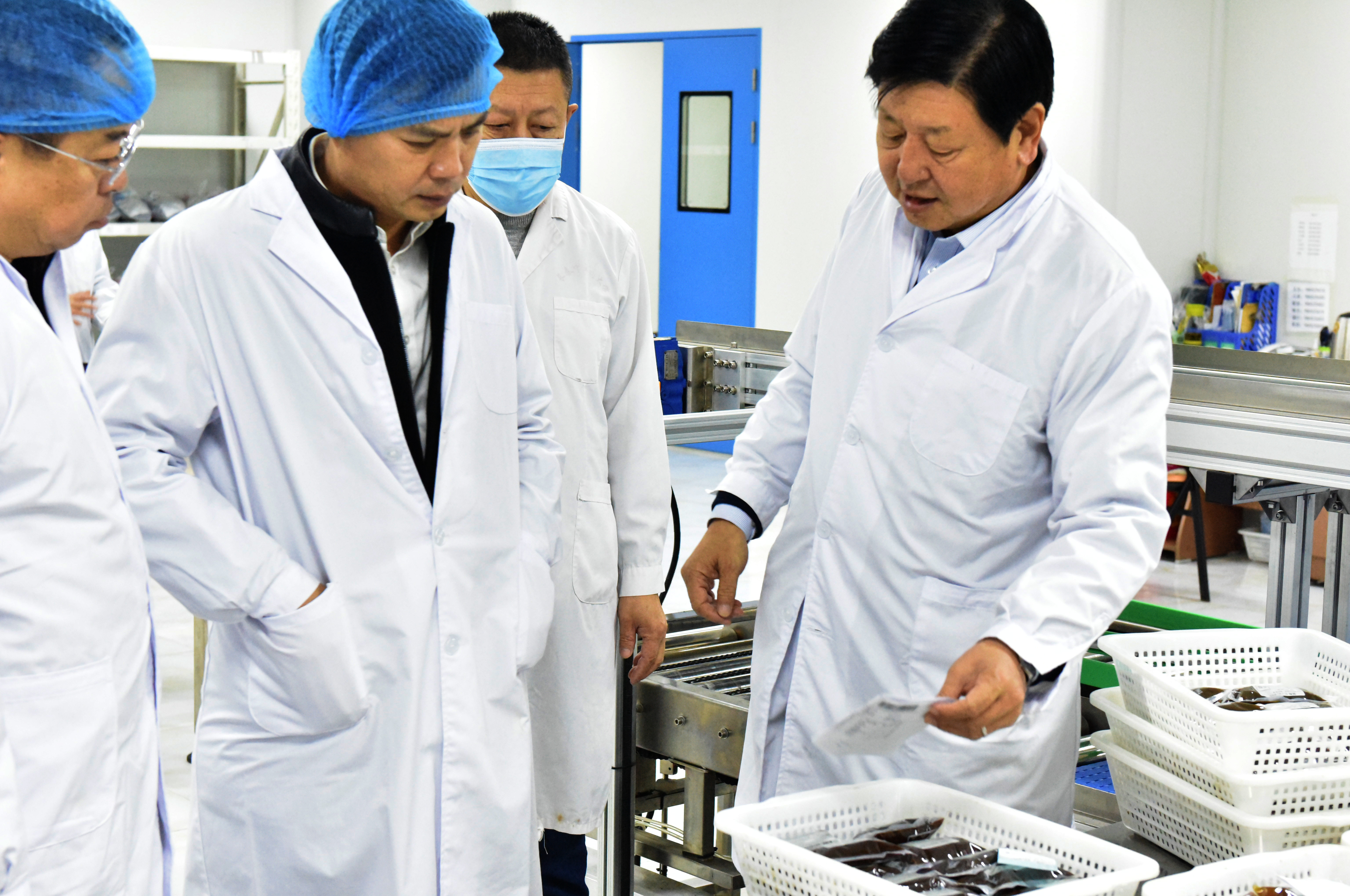 在集团北湖园区林英培董事长参观了北药智慧物联煎药中心、北药标准化物流仓储中心、北药品正生物科技净化车间及正在建设中的中药制剂中心。
