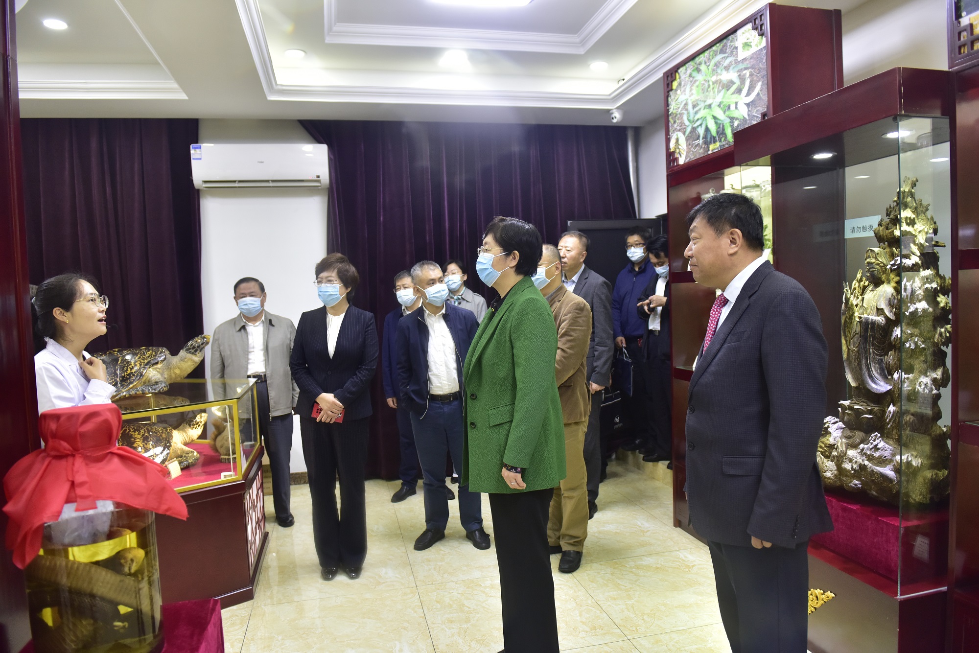 调研组一行来到中药饮片标本室,工作人员介绍了标本室中的饮片标本及珍稀饮片。