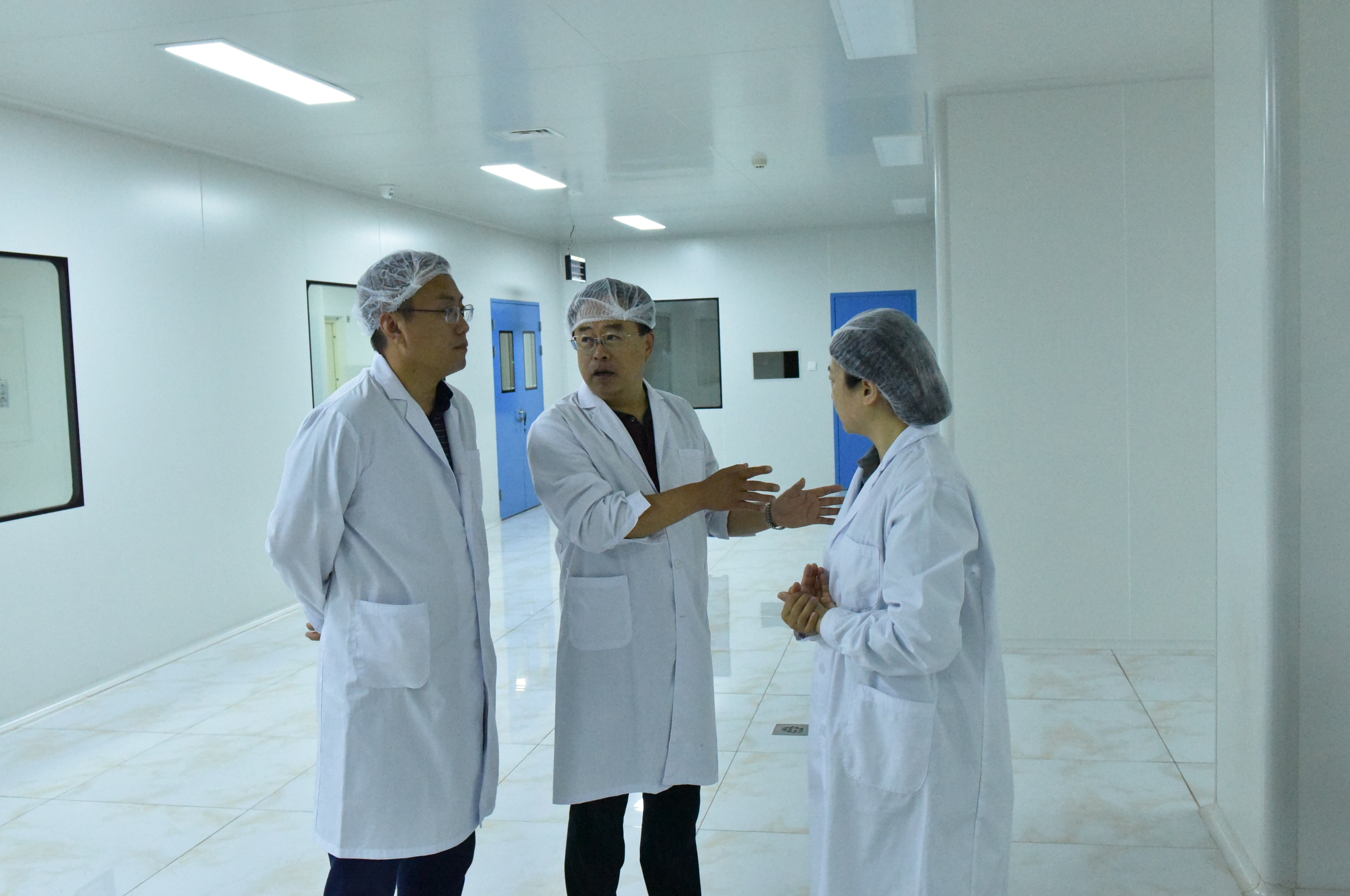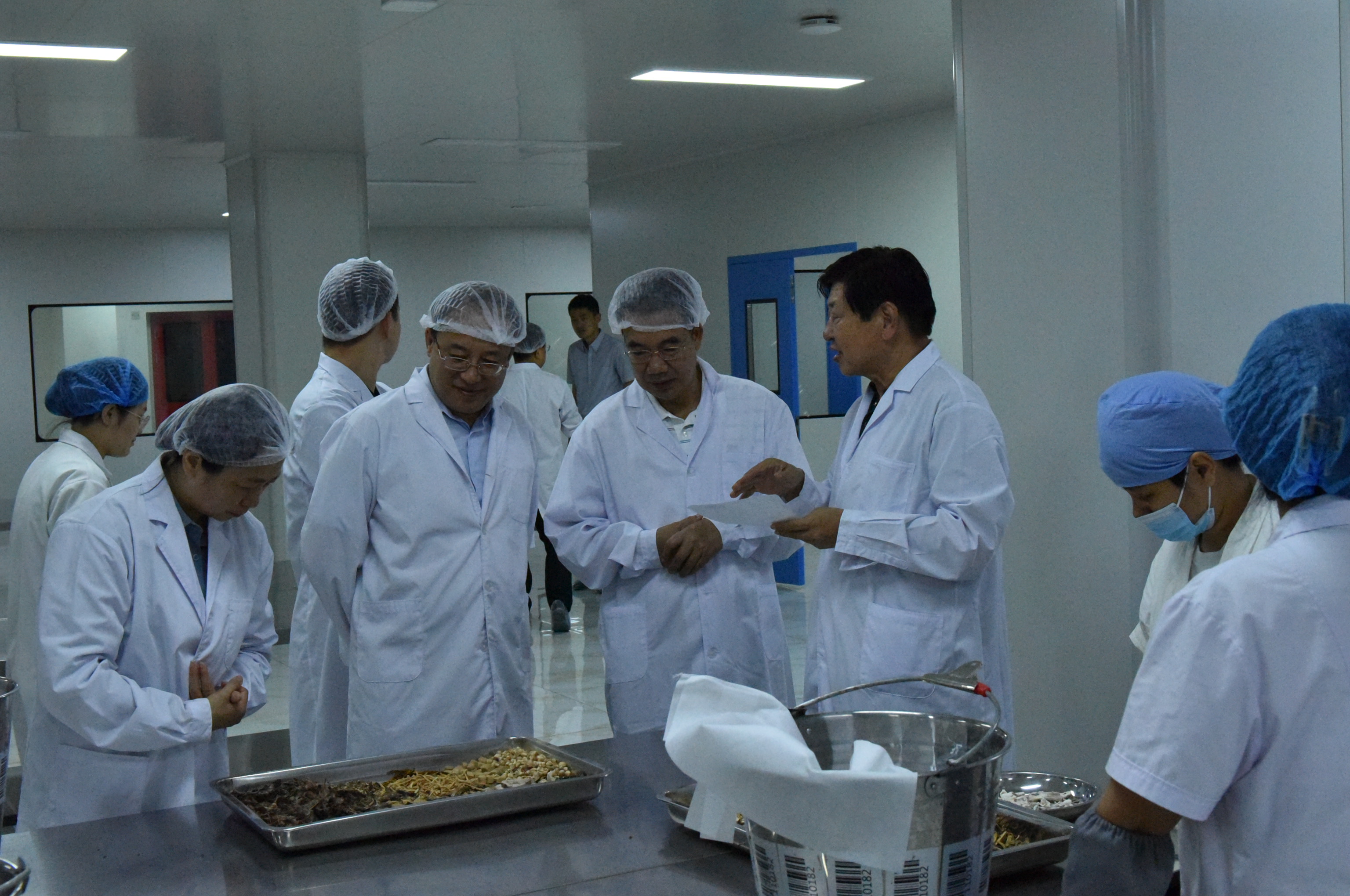 韩英彪总经理带领周惠会长一行参观北湖园区,向周会长一行介绍了北药品正公司研发出品的新资源食品系列。