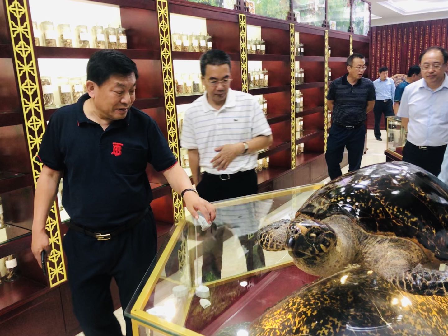 最后,董事长陪同客人来到莲花山厂区,参观了北药药材加工公司的标本室、成品库、以及鼎信检测公司的化验室。