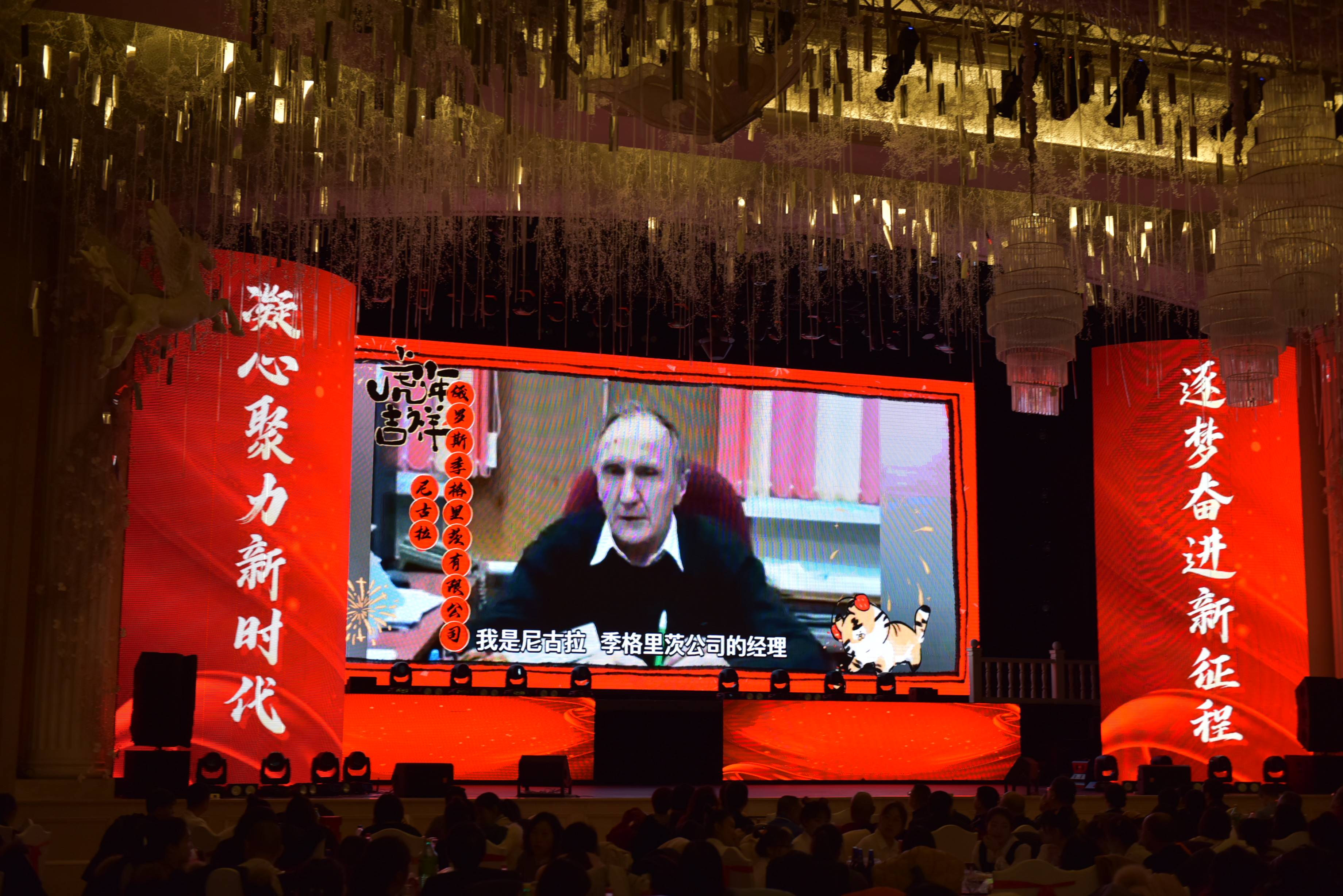 由于疫情原因,未能到场的海外公司员工也通过视频的方式给大家带来了新年祝福。北薬(日本)株式会社的黄薇女士来到了现场,并致新年贺词,表达了自己内心对集团最真挚的心意和祝愿。