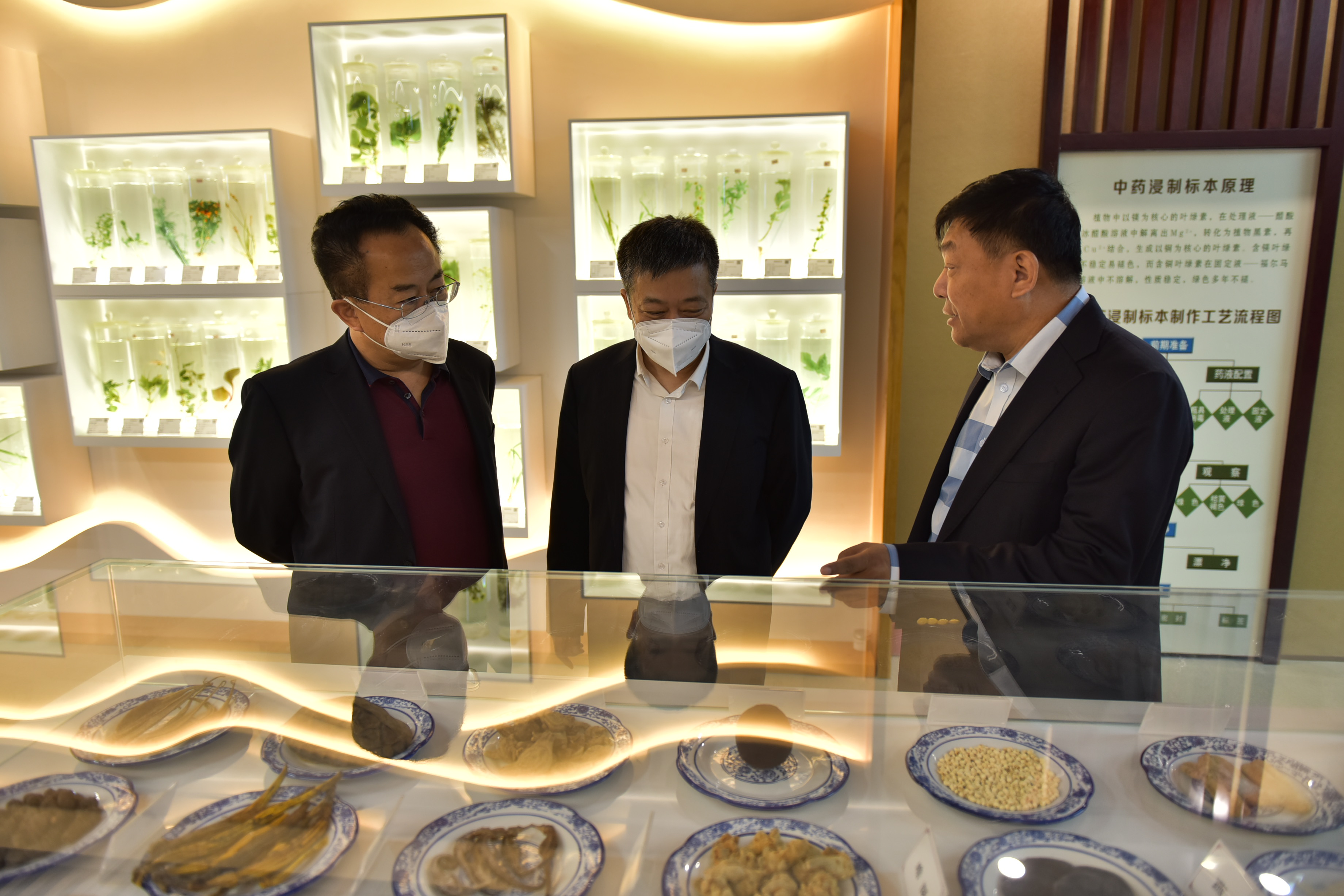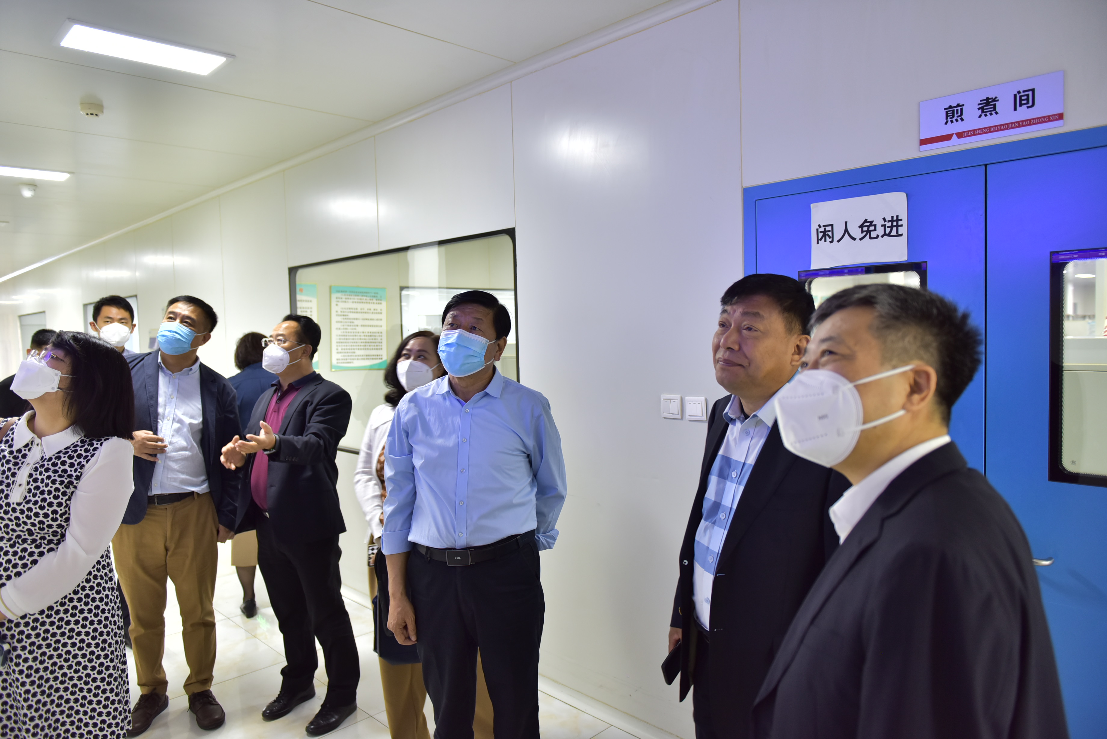 薛主任一行先后参观了北药展览馆、药品标准化物流仓储中心、北药中药制剂生产中心、北药智慧物联煎药中心。通过参观和介绍,薛主任一行对吉林北药集团有了进一步认识和了解,对吉林北药集团的中药全产业链发展给出了肯定认可。